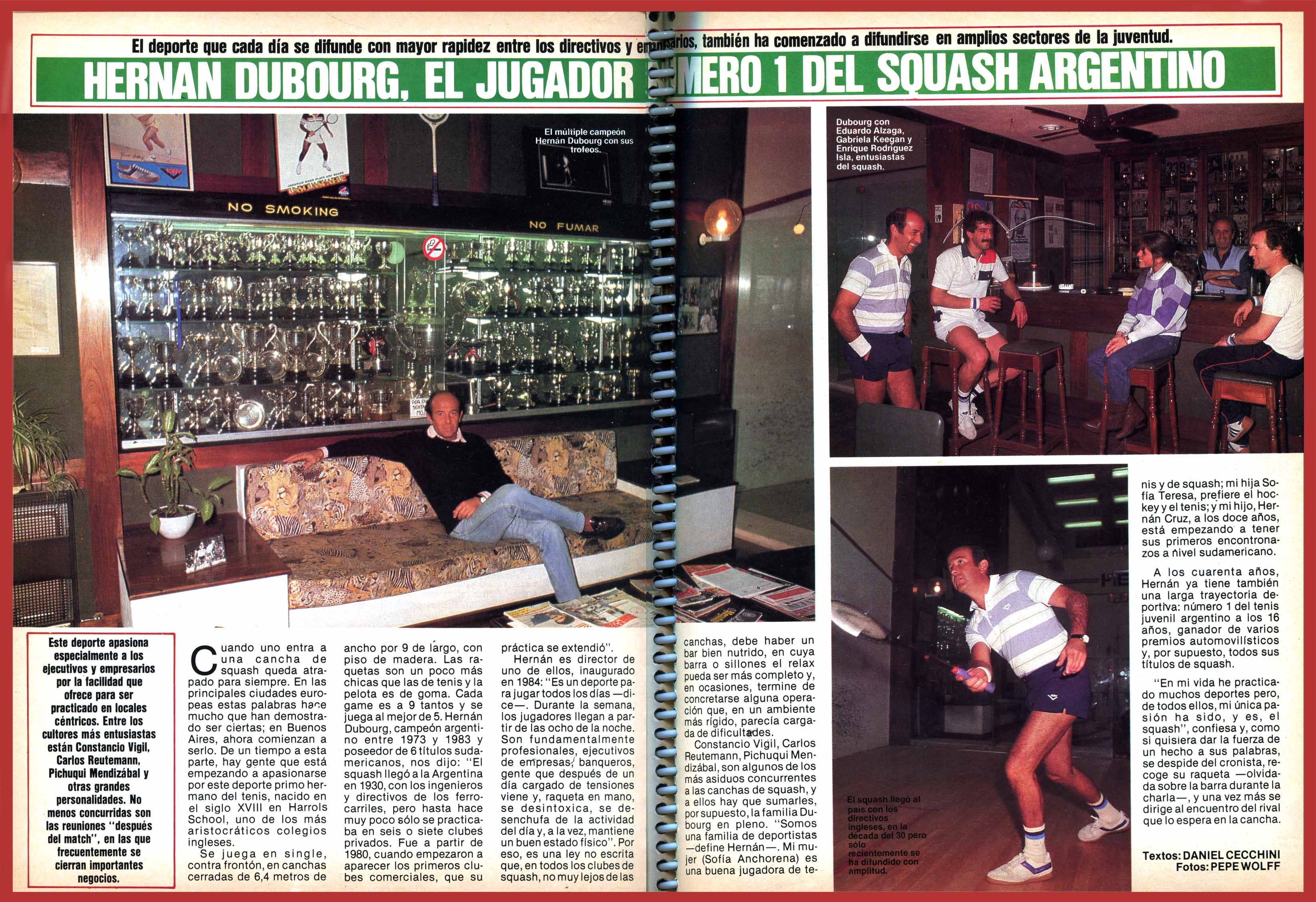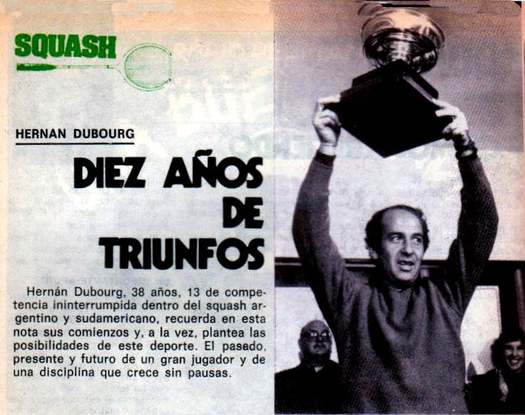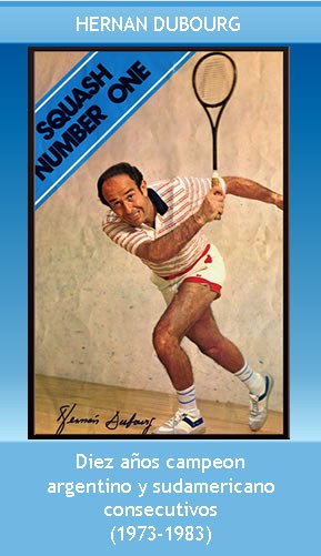 En la Argentina desde marzo de 1973 hasta 1983 Hernán Dubourg jugo 850 partidos de campeonato , ganando un total de 2.500 games y cediendo nada mas que 5 parciales con una increíble estado físico por rigurosos entrenamientos y mejorando la técnica logro dominar el squash argentino y de Sud América por una década en 1983.